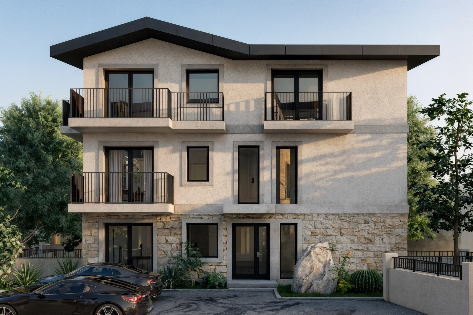 İki bloktan oluşan yapı kurgusunda, ön blokta yer alan konutlar ve zemin kattaki ticari birimler sokağın canlı kamusal hayatıyla doğrudan ilişki kurar. Arka blokta konumlanan otel yapısı ise daha sakin ve kontrollü bir konaklama deneyimi sunacak şekilde planlanmıştır.