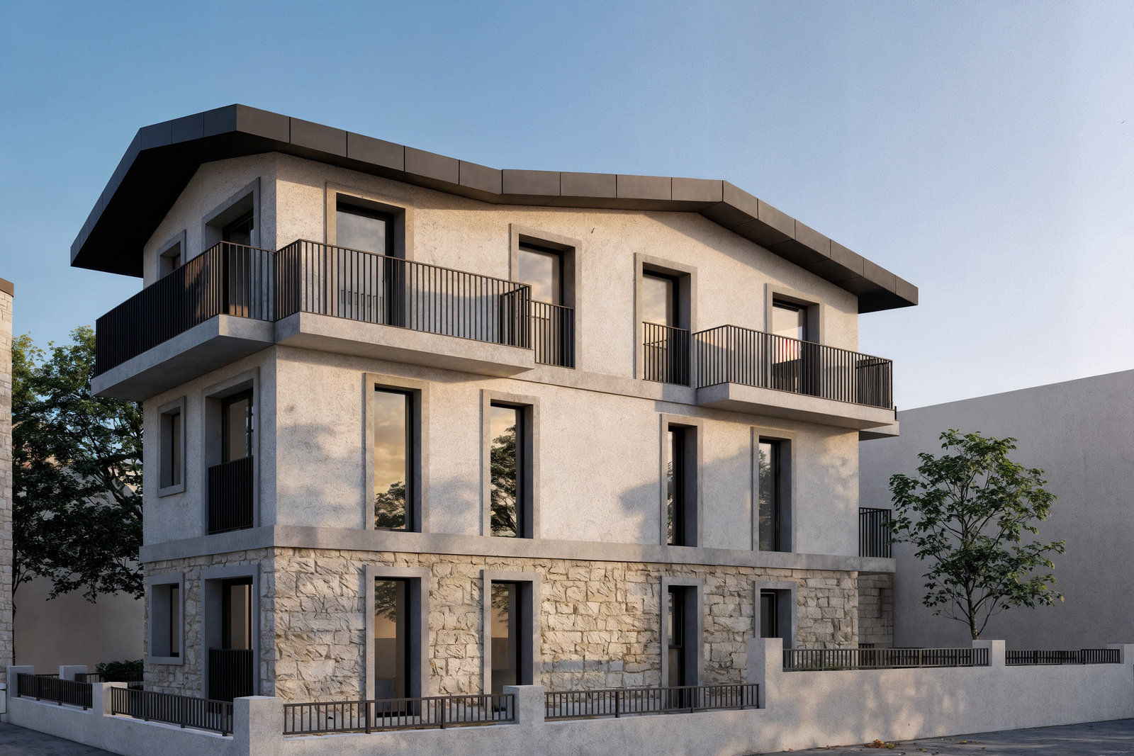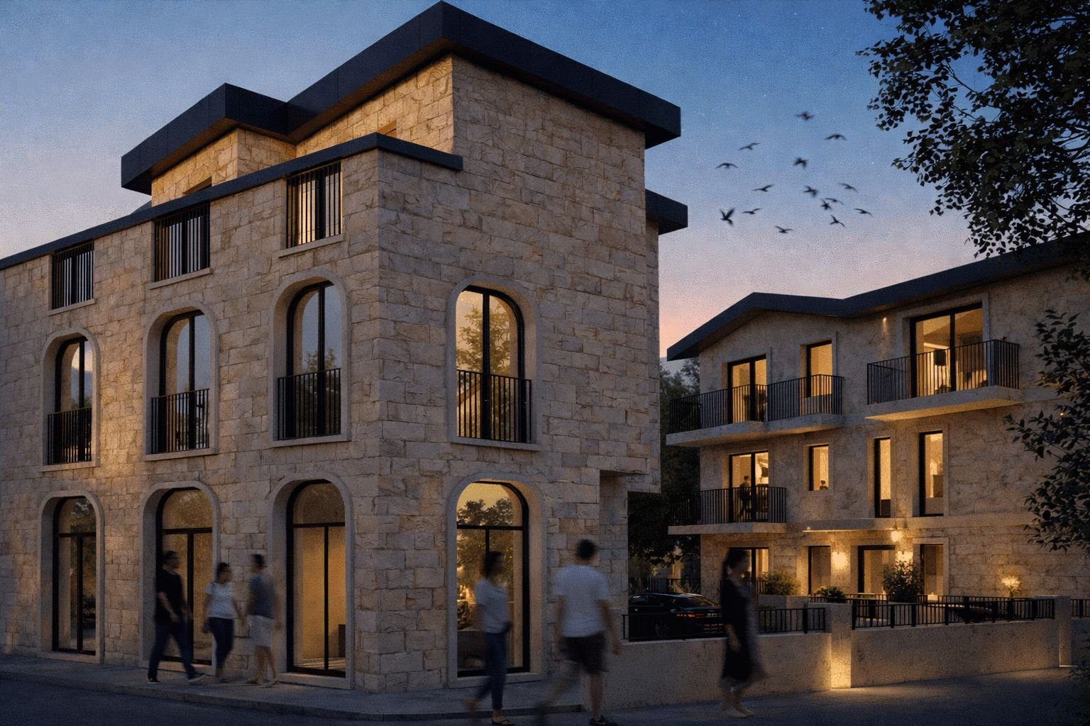 İki bloktan oluşan yapı kurgusunda, ön blokta yer alan konutlar ve zemin kattaki ticari birimler sokağın canlı kamusal hayatıyla doğrudan ilişki kurar. Arka blokta konumlanan otel yapısı ise daha sakin ve kontrollü bir konaklama deneyimi sunacak şekilde planlanmıştır.