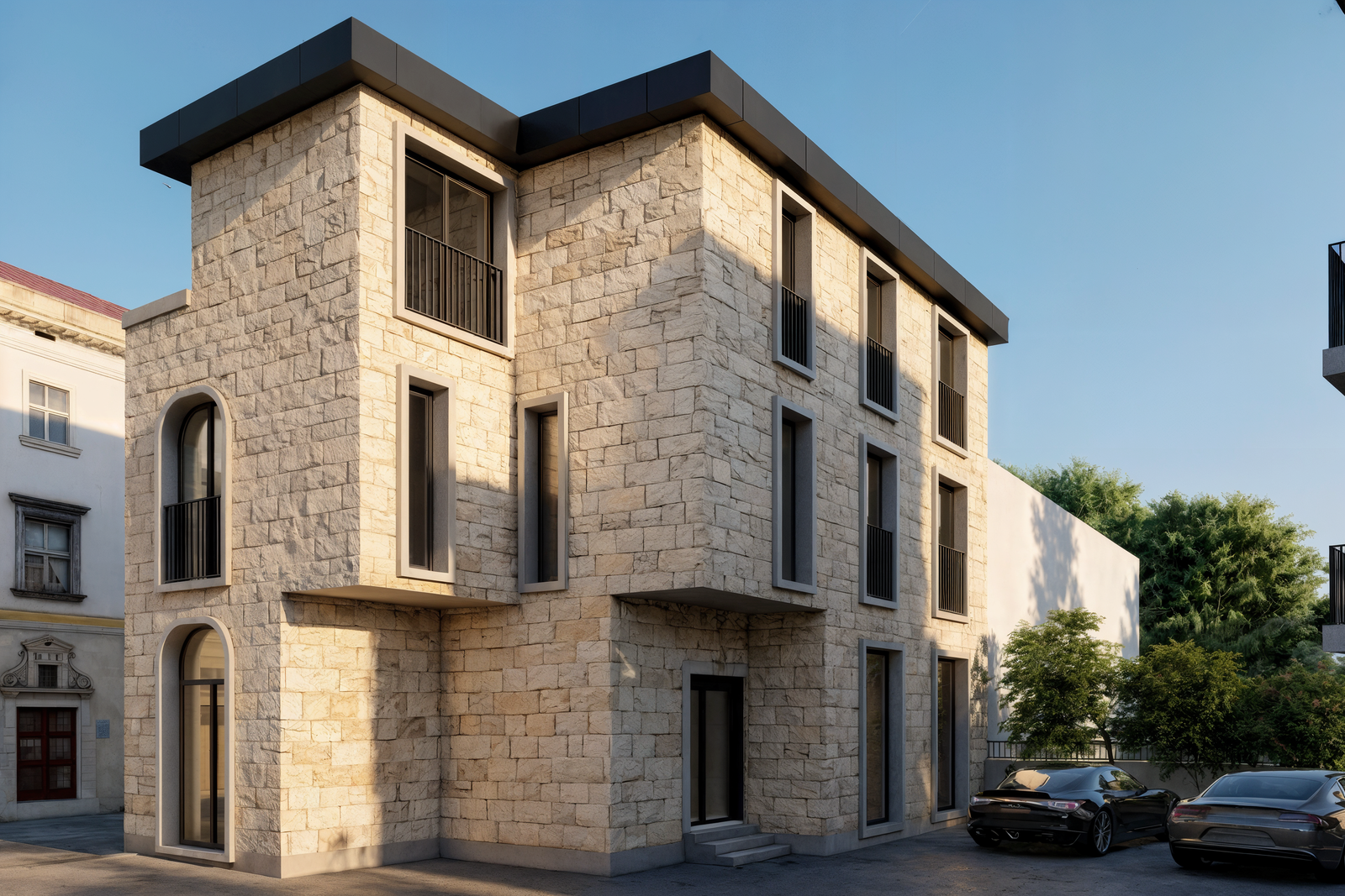 Urla’nın karakteristik bölgelerinden biri olan Sanat Sokağı’nda konumlanan proje, bölgenin kültürel dokusu ve mimari kimliği ile uyumlu olacak şekilde tasarlanmıştır. Yapının tümünde kullanılan doğal taş cepheler, yerel mimari geleneğe referans verirken çağdaş bir yorumla yeniden ele alınmıştır.